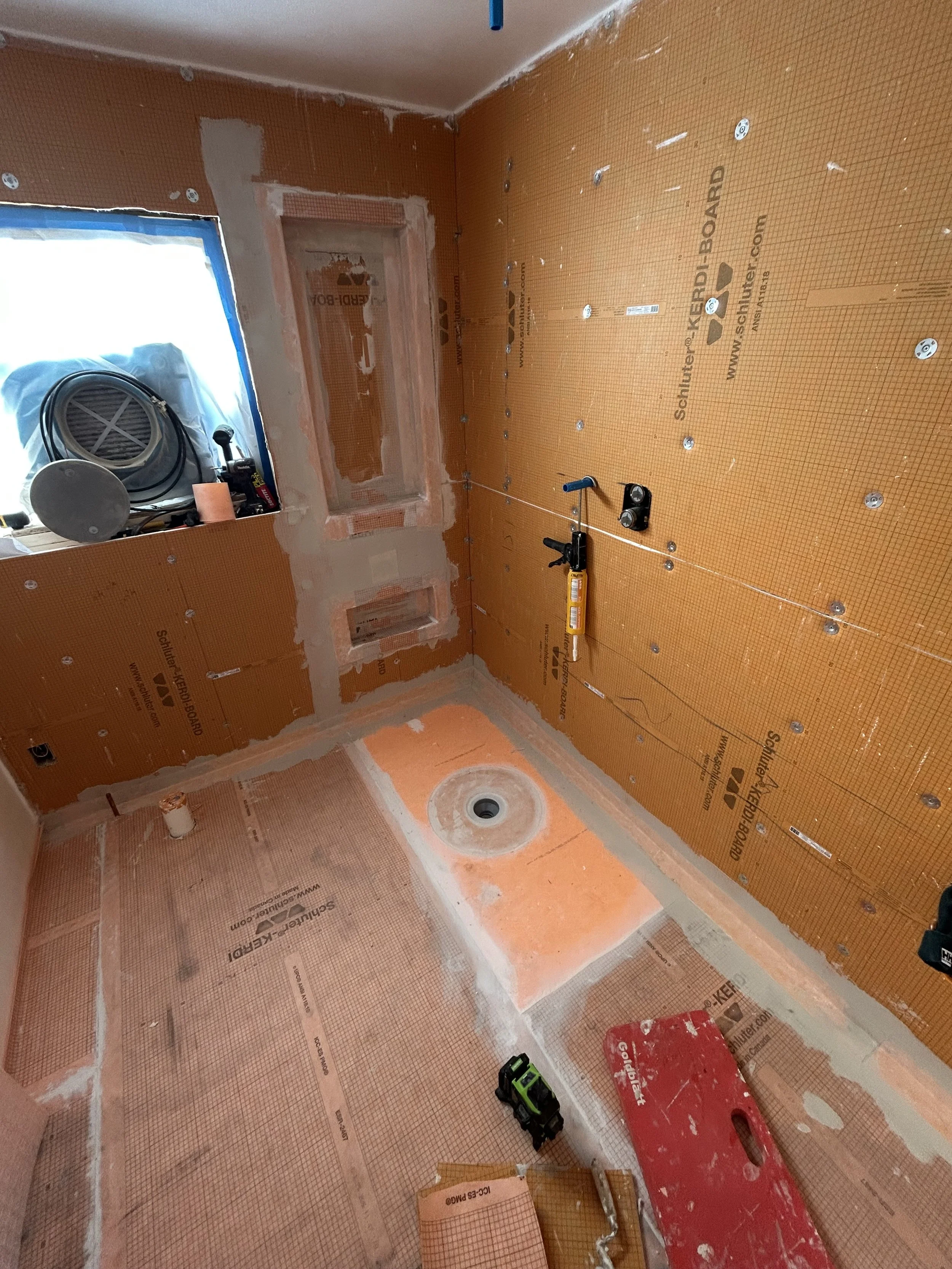 A. James Arrington, owner of Benchmark Tile, brings over 20 years of experience in tile installation and construction. Specializing in high-end tile work for bathrooms, kitchens, and custom projects, he is known for his precision and commitment to creating beautiful, durable spaces. With a strong background in various aspects of construction, James understands every detail of a remodel, ensuring top-quality results. His exceptional customer service and dedication to perfection set him apart. Outside of work, James enjoys family road trips, building in Minecraft with his child, and drawing inspiration from tile showrooms and exhibitions around the world.